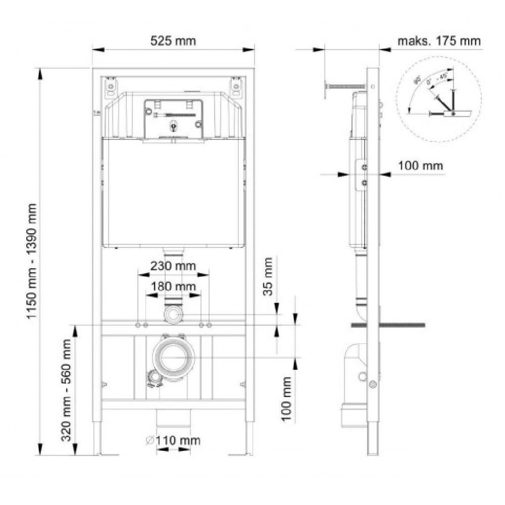 - Za instalaciju na čvrste zidove, ili između dve lagane gipsane ploče prema uputstvu